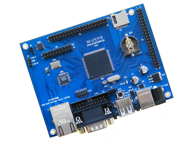 Основа платы - микроконтроллер фирмы NXP LPC1788, это новое семейство ARM Cortex M3 микроконтроллеров этой фирмы с широчайшим набором внутренней периферии: Ethernet, USB host/client/OTG, контроллер внешней памяти EMC (в том числе и SDRAM), CAN, RS232, SPI, I2C ... Подключенная периферия